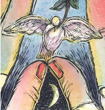 The GiftLithograph, 16"x20" The quotation which inspired and surrounds `The Gift' is attributed to Rabbi Israel Ben Eliezer, the `Baal Shem Tov' or `Master Of The Good Name'. This 17th century Polish teacher and visionary was the founder of the mystical, spiritual movement of Hasidism, whose proponents continue to celebrate their faith with joy and the performance of good deeds. The hands, encompassing the dove with its olive branch, form the priestly blessing; bestowing the concepts of rebirth, hope and peace, which are the `Gift' of Hashem for all time. The three rainbows represent the perfection of Divine benevolence while the sun and moon may be seen in their eternal succession---symbolizing the continuity of the Jewish Life cycle. Text & Illustrations 1995 Ilene Winn-Lederer |