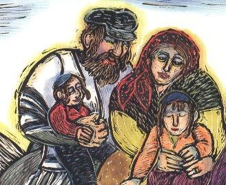 Journey of LifeLithograph, 16"x20" Set in motion by their memories, three generations of an Eastern European Jewish family soar beneath the night sky upon a majestic quill pen. Guided by Hope and sustained by Faith, they journey above the forests of their ancestors towards the Book Of Life. And Time is suspended, as in a dream, for the space of a heartbeat. Text & Illustration 1995 Ilene Winn-Lederer |